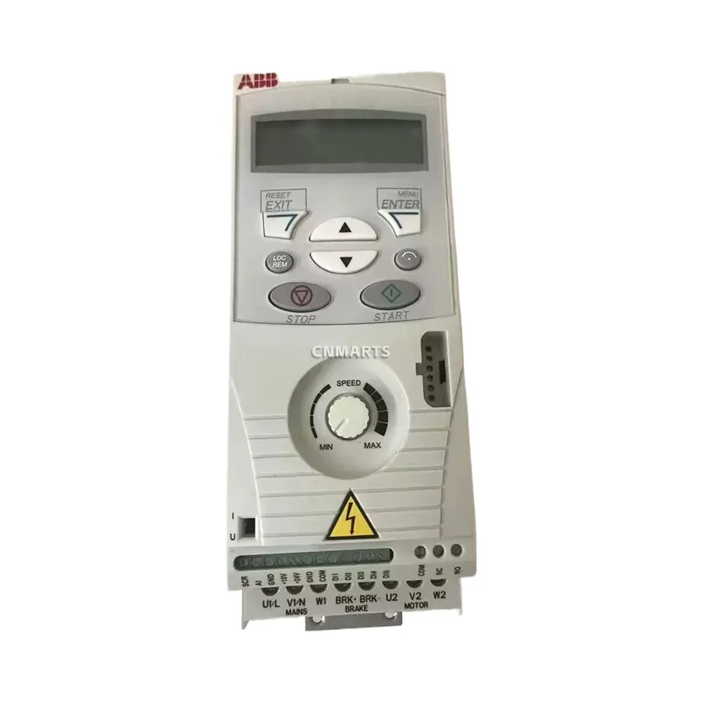 The ABB ACS150-03E-05A6-4 is a compact and versatile micro AC drive designed for simple machinery applications. Part of ABB’s component drive series, it offers precise motor control for tasks such as conveyors, mixers, fans, and pumps. This model features an integrated control panel with a user-friendly LCD display and a built-in potentiometer for easy speed adjustment right out of the box. Its compact design and uniform height and depth make it ideal for cabinet installation, saving space and simplifying setup. With features like a built-in brake chopper and an integrated EMC filter, the ACS150 provides a cost-effective and reliable solution for controlling 3-phase AC motors up to 2.2 kW (3 HP).