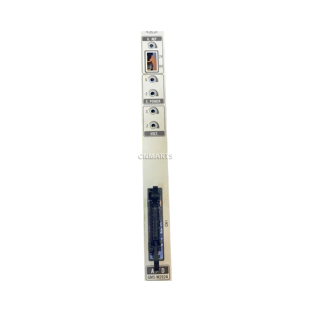 The AD GMS-M202A is a specialized industrial control circuit board engineered for reliability and precision in demanding automation environments. This module is built with high-quality components, including integrated circuits from Toshiba and highly efficient TDK DC-DC converters (models CBM-0512DF and CBK-0505SF), ensuring stable power management and consistent operational performance. The user-facing metal front panel provides easy access to critical interface ports like V. REF, S, Z, E. POWER, and VOLT, along with a CN1 connector. An integrated voltage meter with a 0V-2V display allows for real-time monitoring, making the GMS-M202A an excellent choice for integration into complex machinery and control systems.