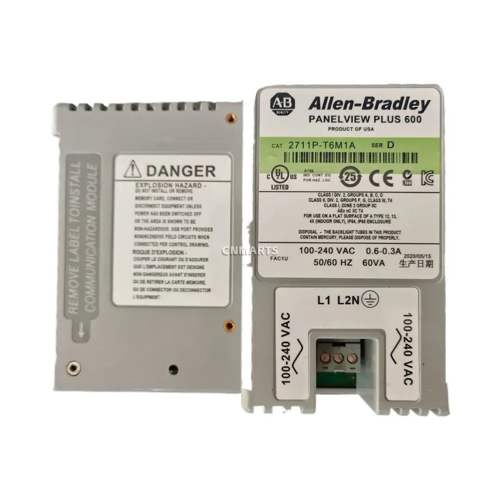 Shop the Allen-Bradley 2711P-T6M1A PanelView Plus 600 HMI terminal. This operator interface features a 5.5-inch monochrome touchscreen, accepts 100-240V AC power, and is rated for hazardous locations. Ideal for industrial control and process monitoring.