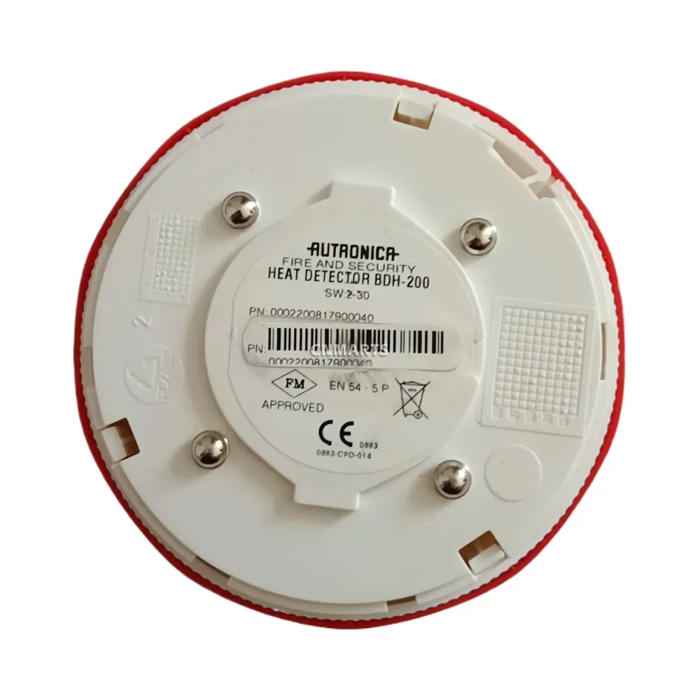 The Autronica BDH-200 is an addressable point heat detector designed for use with Autronica’s interactive fire detection systems. It utilizes a high-quality thermistor to provide precise temperature readings and can be configured to different heat classes (A1, A2, B, C, D, E, F, G) directly from the control panel. This detector is engineered for reliability in environments where smoke detectors are unsuitable, such as kitchens, garages, or areas with high dust levels. An integrated short-circuit isolator in each unit enhances system integrity, and its robust design ensures dependable performance even in demanding conditions.