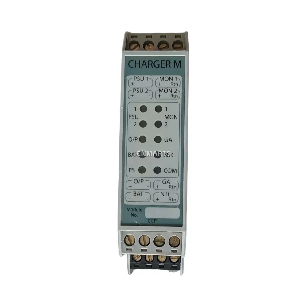 The CCP CHARGER M is a professional-grade, DIN rail mountable industrial module designed for the comprehensive monitoring of battery chargers and power supply units. Engineered for reliability in critical systems, it features dual inputs for redundant power supplies (PSU 1, PSU 2) and dedicated monitoring channels. The module provides clear, at-a-glance system status via a full array of LED indicators for power, battery condition, general alarms, and temperature. With dedicated terminals for main output, battery connection, a general alarm relay, and an NTC temperature sensor, the CHARGER M offers a complete solution for ensuring the integrity and performance of your backup power systems. Its ME 22.5 series housing ensures seamless integration into standard control cabinets and compatibility with BUS 10 bus systems.