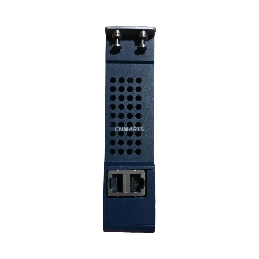 Emerson IC695ETM001-LAAA RX3i Ethernet Interface Module with dual RJ45 ports. Supports 10/100/1000 Mbps for high-speed industrial PLC communication.