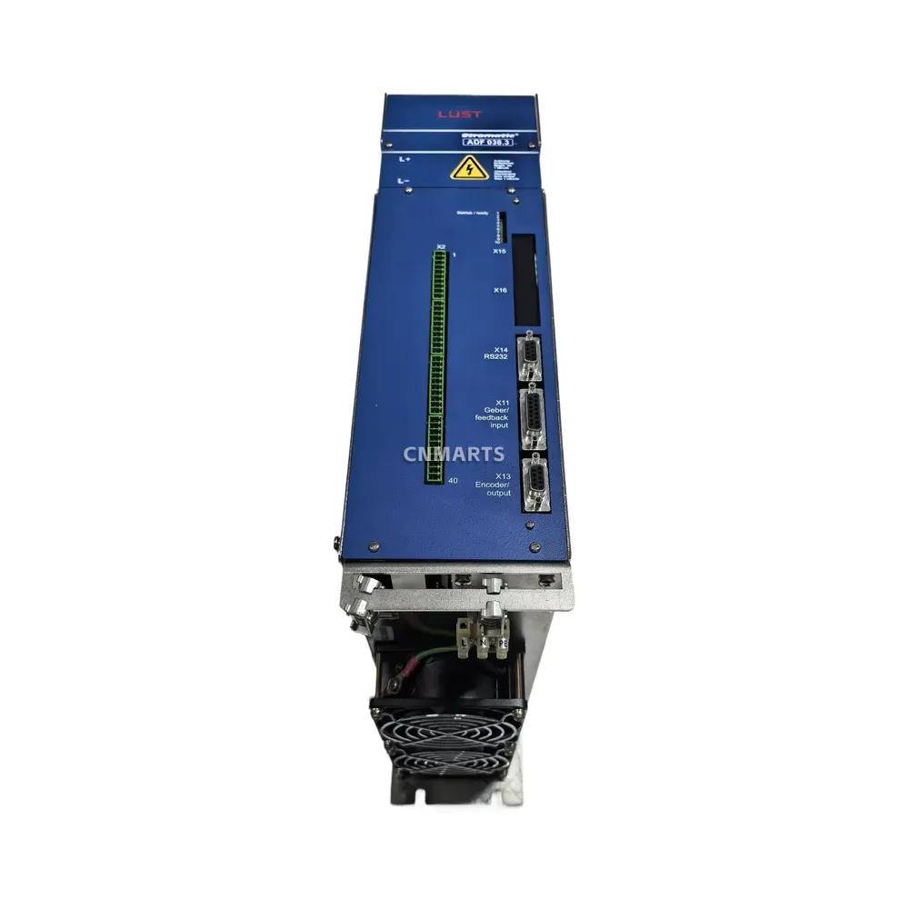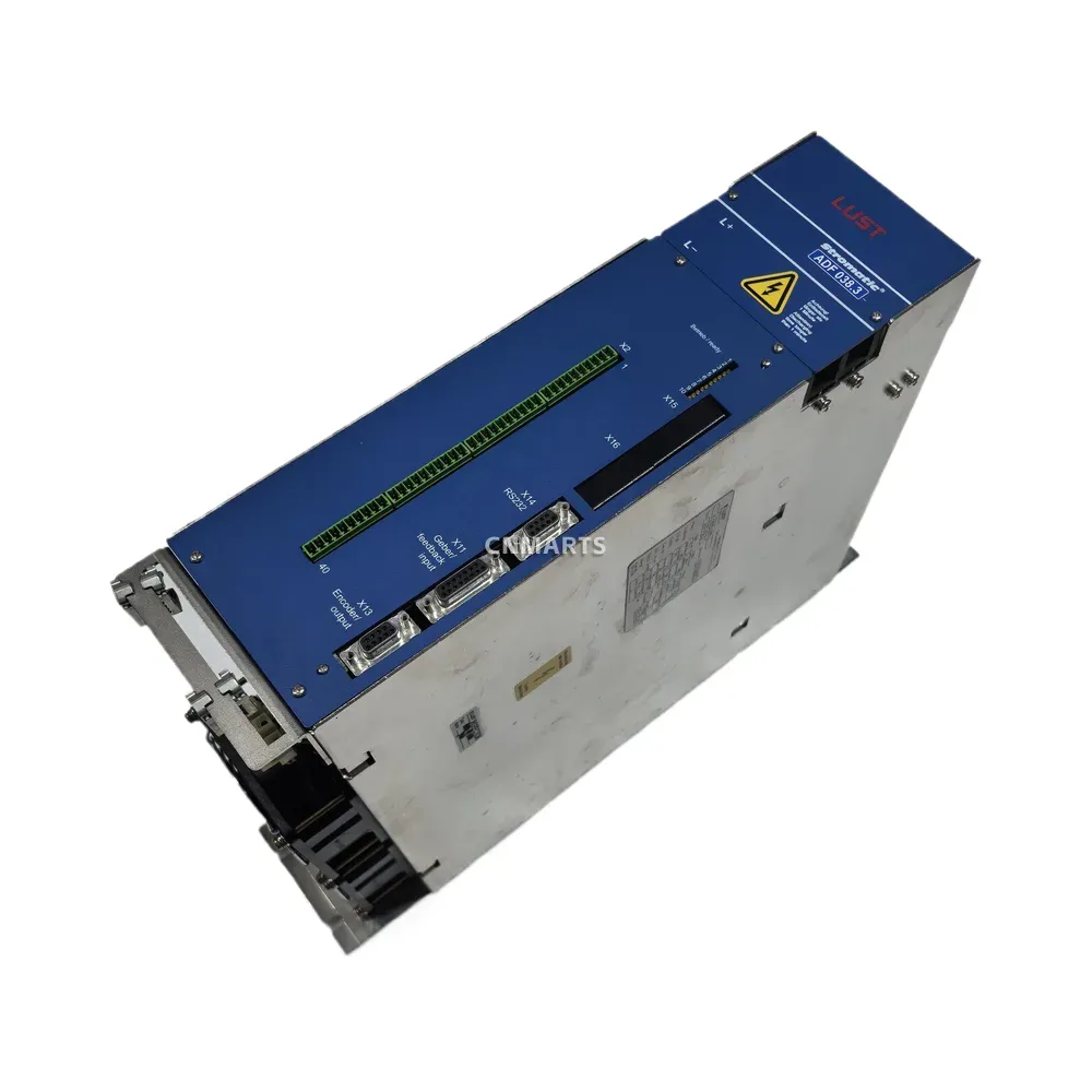 Discover the reliable LUST ADF 038.3 AC Servo Drive, a 25 KVA, 38A unit designed for precise industrial motor control. Features RS232 interface and robust performance.