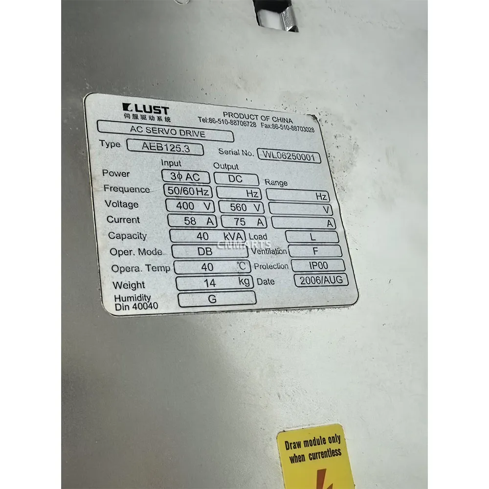 Shop the LUST AEB 125.3, a high-performance 40 kVA AC servo drive for industrial automation. This 400V, 3-phase drive provides a 75A DC output for precise and powerful servo motor control. Ideal for manufacturing and robotics applications.