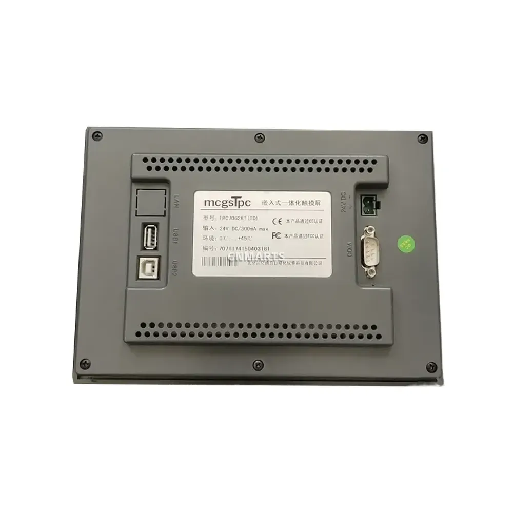 The mcgsTpc TPC7062KT (TD) is a robust and reliable 7-inch embedded Human-Machine Interface (HMI) designed for industrial automation and control applications. Featuring a high-resolution TFT LCD touch screen, it provides an intuitive and clear interface for monitoring and managing machinery and processes. Built with an ARM Cortex-A8 processor, it delivers stable performance for demanding environments. Its versatile connectivity options, including LAN, USB, and serial ports, ensure seamless integration into existing control systems. Certified with CE and FCC, the TPC7062KT (TD) is an ideal solution for industrial control, building automation, and equipment manufacturing.