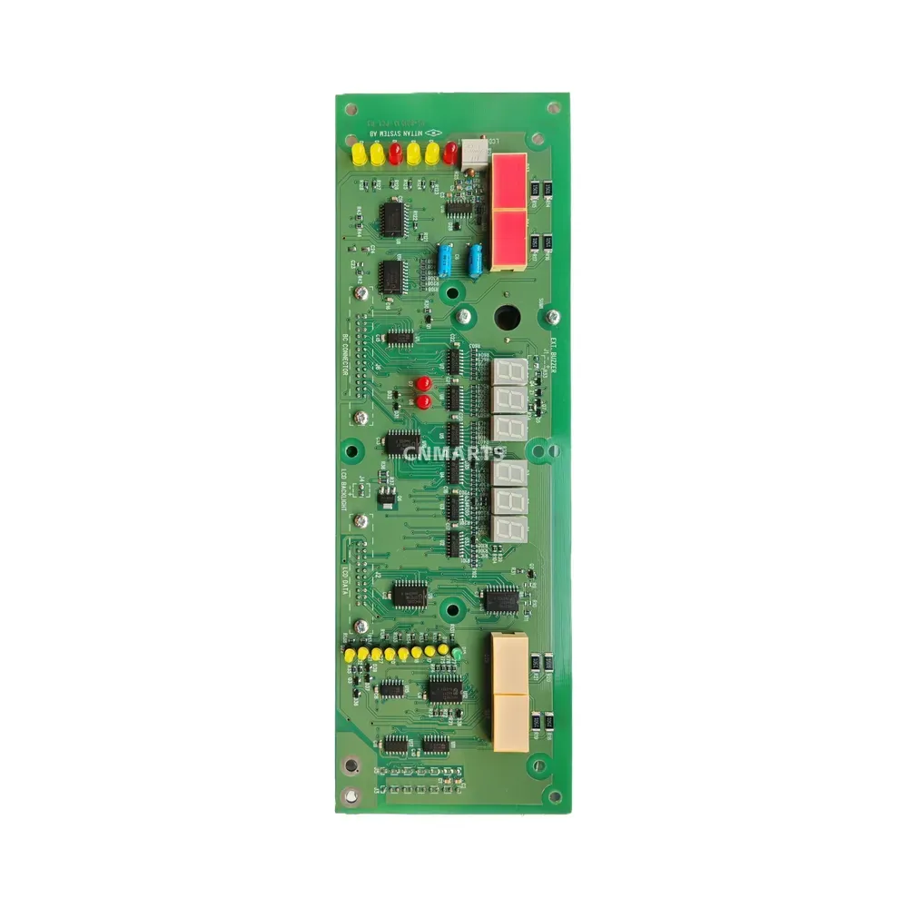 Genuine Mitan System AB KG-090113 control circuit board. This essential elevator display PCB is a direct replacement part, featuring dual 7-segment displays and multiple status indicators for Mitan control systems.