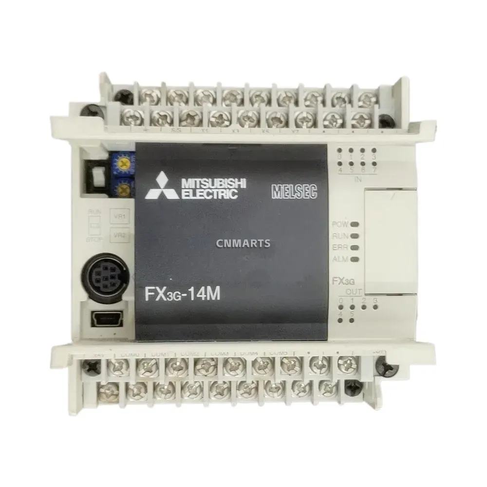 Shop the Mitsubishi Electric FX3G-14MT/ES-A, a compact PLC from the MELSEC FX3G series. Features 14 I/O points (8 inputs, 6 transistor outputs), 100-240VAC power, and built-in USB/RS-422 ports for robust automation control.