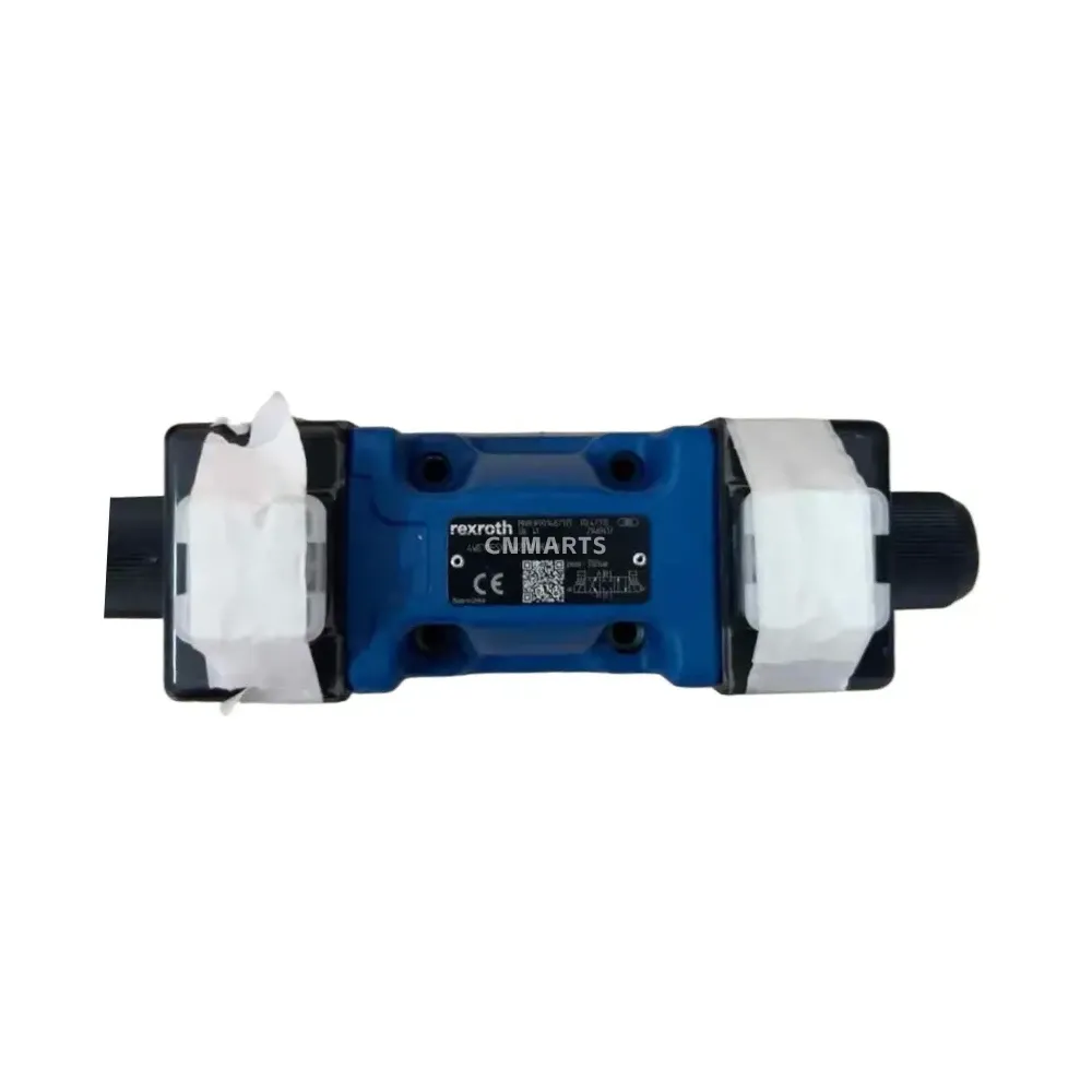 Buy the genuine Rexroth 4WE10E5X/EW230N9K4/M (MNR R901487113) NG10 solenoid directional control valve. This 4/3-way hydraulic valve operates up to 350 bar with a 230V AC coil, ideal for industrial hydraulic systems requiring precise flow control.