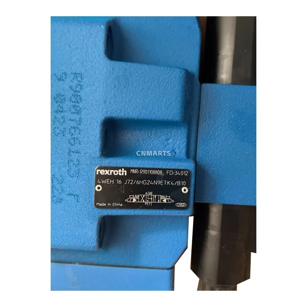 Buy the genuine Rexroth 4WEH 16 J72/6HG24N9ETK4/B10 (R901108808) electro-hydraulic directional valve. This NG16, 4/3-way valve features a J-spool, 24V DC solenoids, and manual override for precise hydraulic control.