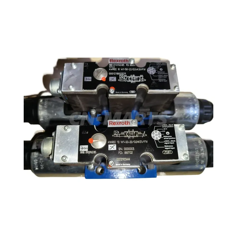 Shop the genuine Rexroth 4WREE 10 W1-50-22/G24K31/F1V (R900965185) NG10 proportional directional valve. This 24V DC pilot-operated valve offers precise hydraulic control with integrated electronics and position feedback for industrial applications.