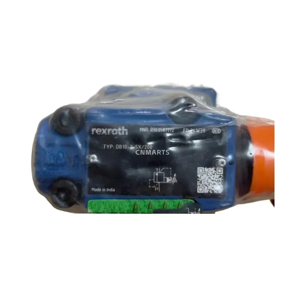 Shop the genuine Rexroth DB10-2-5X/200 pilot-operated hydraulic pressure relief valve. Size 10 component with a maximum pressure setting of 200 bar, ideal for system pressure limitation and safety. MNR: R900587772.
