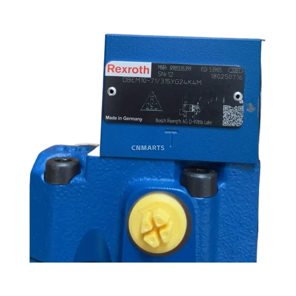 Genuine Bosch Rexroth DBEM10-71/315YG24K4M (R901335399) size 10 pilot-operated proportional pressure relief valve. Features 315 bar max pressure, 24V DC solenoid, and ISO 6264 mounting. Ideal for precise hydraulic pressure control.
