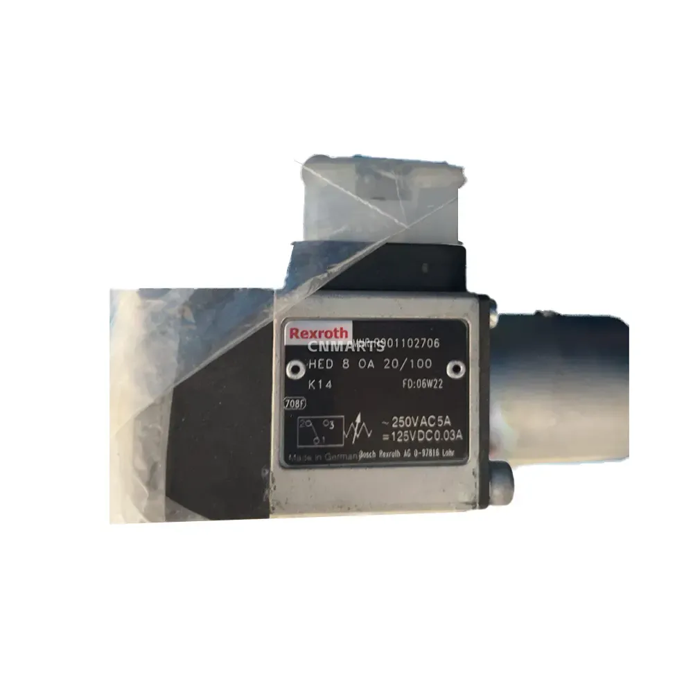 Buy the genuine Bosch Rexroth HED 8 OA 20/100 hydraulic pressure switch (MNR R901102706). This reliable piston-type switch features an adjustable pressure setting up to 100 bar for precise control in industrial hydraulic systems.
