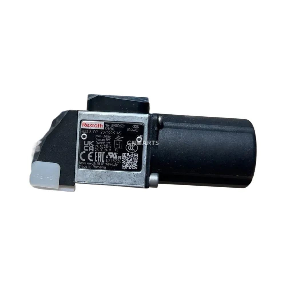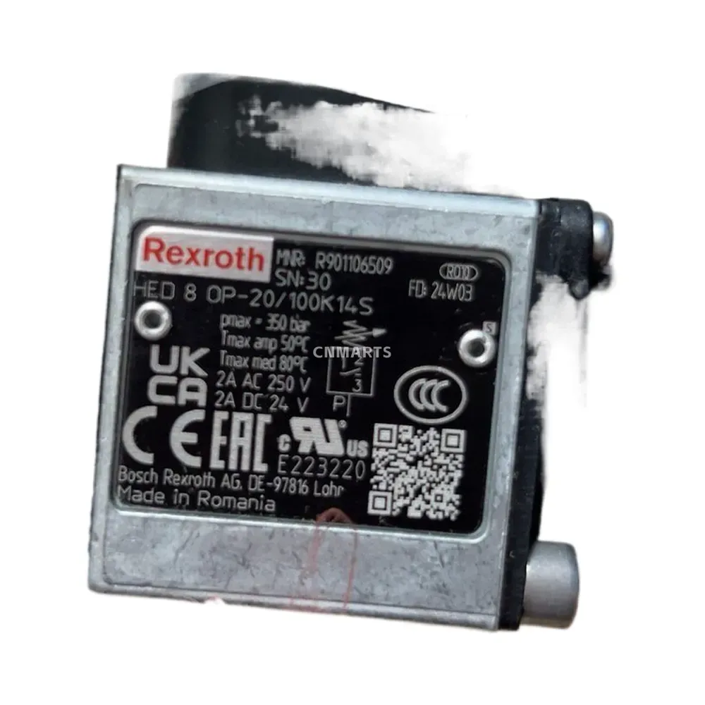 Shop the genuine Rexroth HED 8 OP-20/100K14-S hydraulic pressure switch (R901106509). This reliable piston-type switch operates up to 350 bar and is ideal for precise pressure control in industrial hydraulic applications.