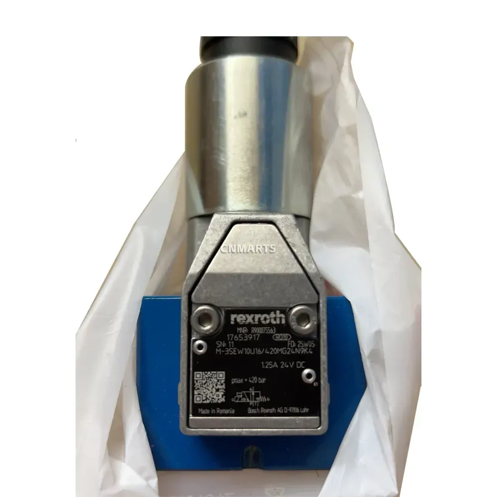 Purchase the genuine Bosch Rexroth M-3SEW10U16/420MG24N9K4, a direct-operated 3/2 directional seat valve (NG10) with a 24V DC solenoid. This high-pressure valve is rated for 420 bar and provides reliable, leak-free hydraulic control.