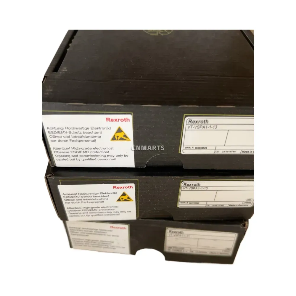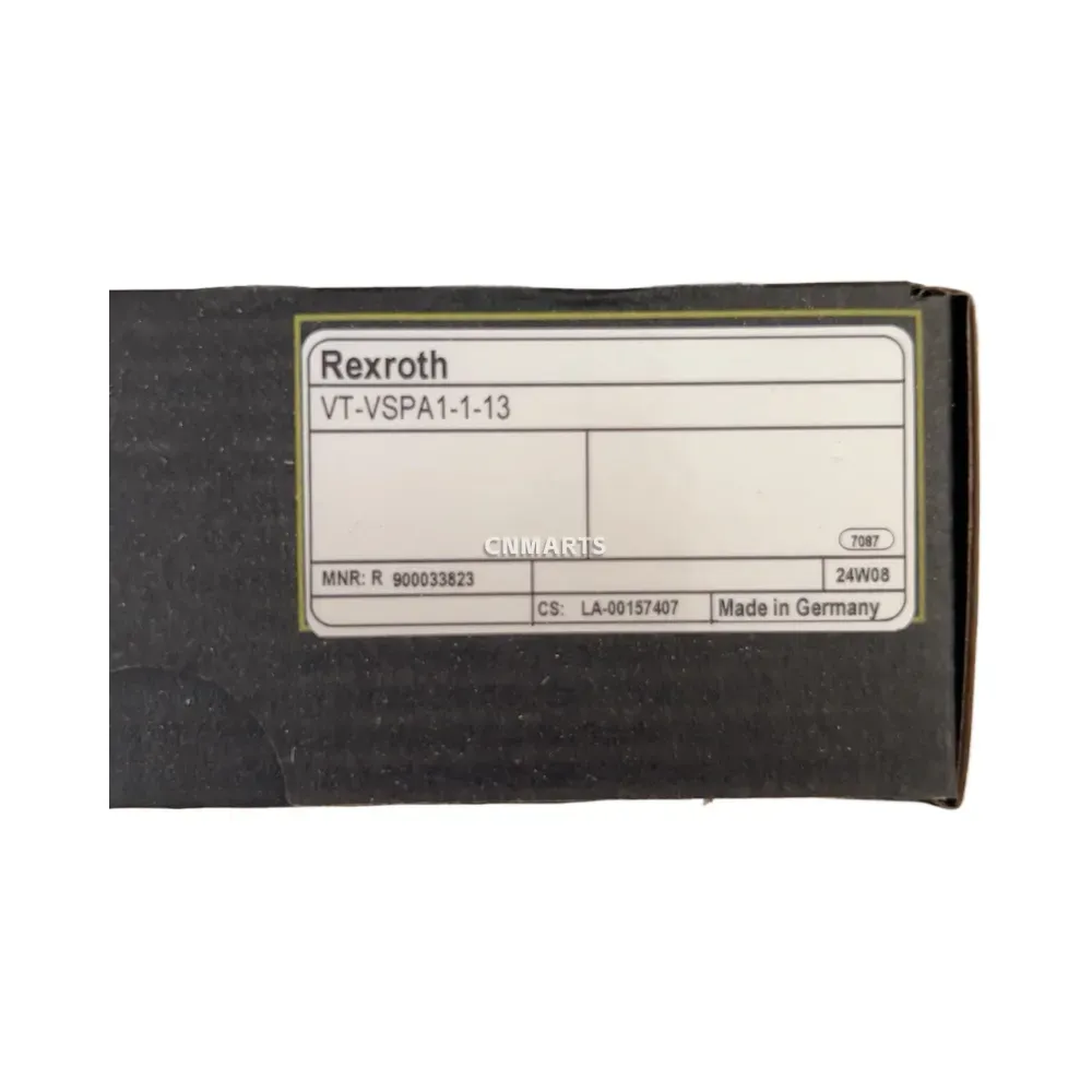 Genuine Rexroth VT-VSPA1-1-13 (R900033823) analog amplifier card for precise control of proportional hydraulic valves. Eurocard format with differential input and adjustable ramp generator for optimal performance.