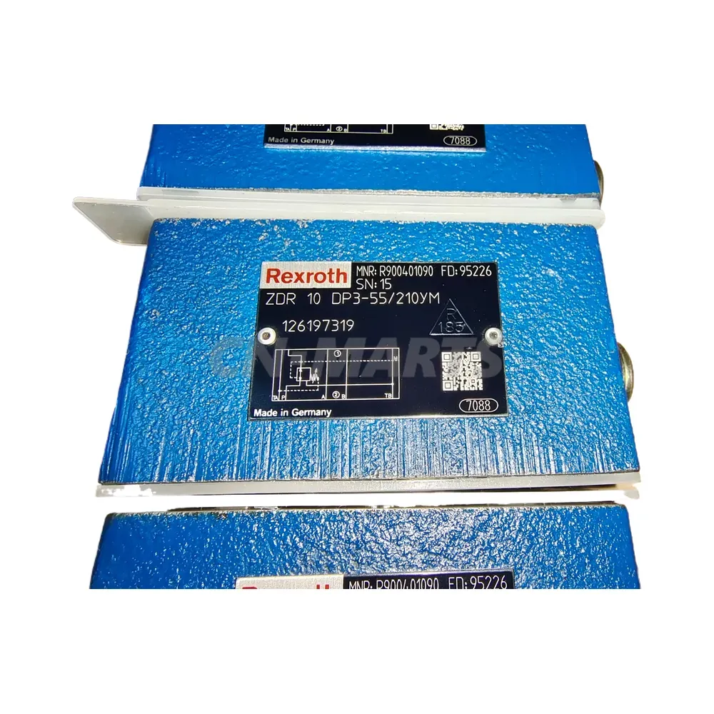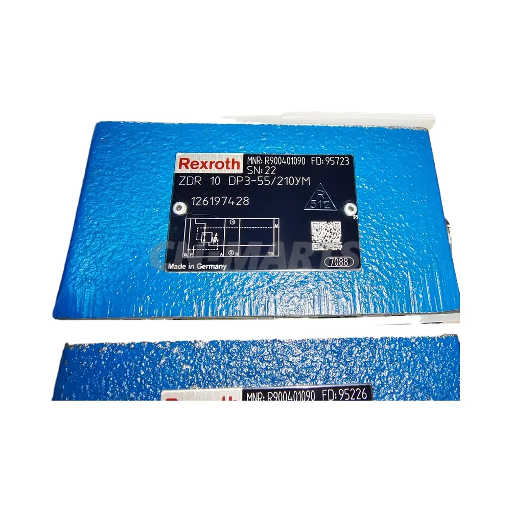 Buy the genuine Rexroth ZDR 10 DP3-55/210YM (R900401090) pilot-operated pressure reducing valve. This NG10 sandwich plate valve features a 210 bar pressure setting and integrated check valve for precise hydraulic control.
