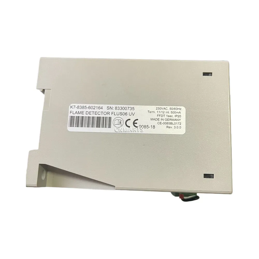 The Saacke FLUS 06 is a compact and reliable UV-based flame detector control unit designed for monitoring flames in industrial burner systems. As a key component of the Saacke se@vis series, this device processes signals from a connected UV sensor to ensure the safe and continuous operation of combustion plants. It is engineered to detect the ultraviolet radiation emitted by oil and gas flames, providing a critical safety interlock. In the event of a flame failure, its fast 1-second detection time (FFDT) ensures a rapid shutdown, preventing unburned fuel accumulation. Made in Germany, the FLUS 06 stands for high quality and durability in demanding industrial environments.