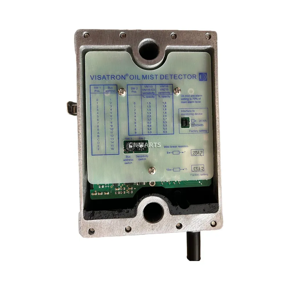 The Schaller Automation VN115/87plus is a high-precision measuring head from the renowned VISATRON® series, engineered for the reliable detection of oil mist in industrial environments. It plays a critical role in preventative maintenance and safety by monitoring enclosed spaces like engine crankcases for explosive oil mist concentrations. Utilizing an advanced optical sensor, the device continuously measures opacity to provide early warnings. The unit features an intuitive visual gauge, diagnostic LED indicators for alarms and system errors, and is highly configurable via DIP switches for sensitivity and bus address. With selectable 4-20 mA or RS485 communication interfaces, the VN115/87plus seamlessly integrates into existing industrial control systems, ensuring robust and dependable safety monitoring.