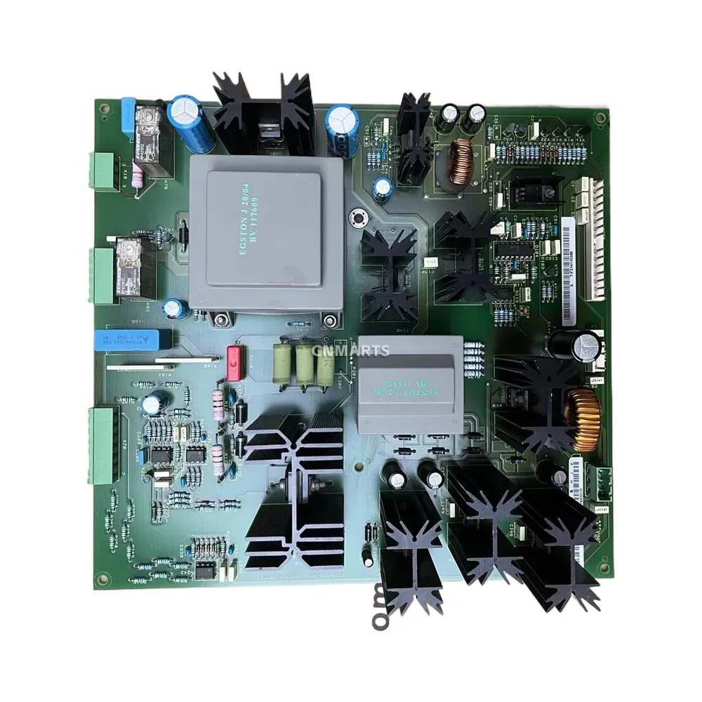 The Schindler Schild 7 x 68 is a crucial industrial-grade printed circuit board (PCB) assembly engineered specifically for Schindler elevator control systems. This board serves as a central hub for power distribution and logic control, ensuring the safe and efficient operation of the elevator. It is built with high-quality, durable components, including robust transformers from Egston and Witema, multiple heat sinks for effective thermal management, and reliable relays and fuses for system protection. The green screw terminal blocks provide secure and accessible connections for wiring, making it a vital component for both maintenance and repair of Schindler lift systems.