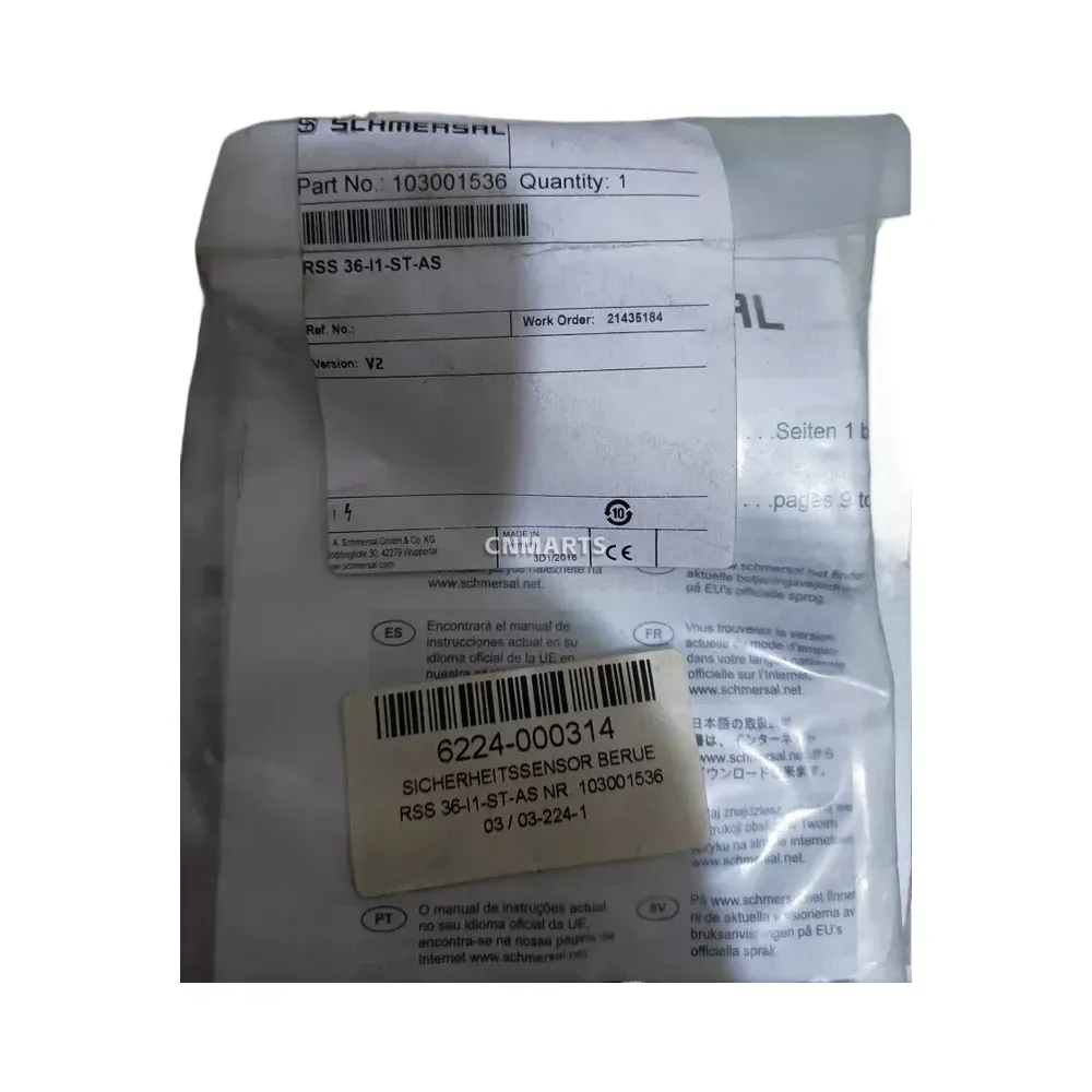Shop the Schmersal RSS 36-I1-ST-AS (Part No. 103001536), a non-contact RFID safety sensor for superior tamper protection. This sensor offers individual coding, PLe/SIL 3 safety levels, and an IP67-rated thermoplastic housing, making it perfect for demanding safety gate and guard monitoring applications.